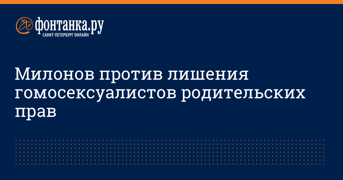 Петербургский депутат Виталий Милонов, автор законов о запрете гей-пропаганды среди несовершеннолетних, высказал свою точку зрения на инициативу федеральных коллег о лишении родительских прав за гомосексуальные связи. Оказалось, что он её не поддерживает.