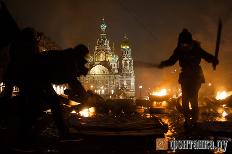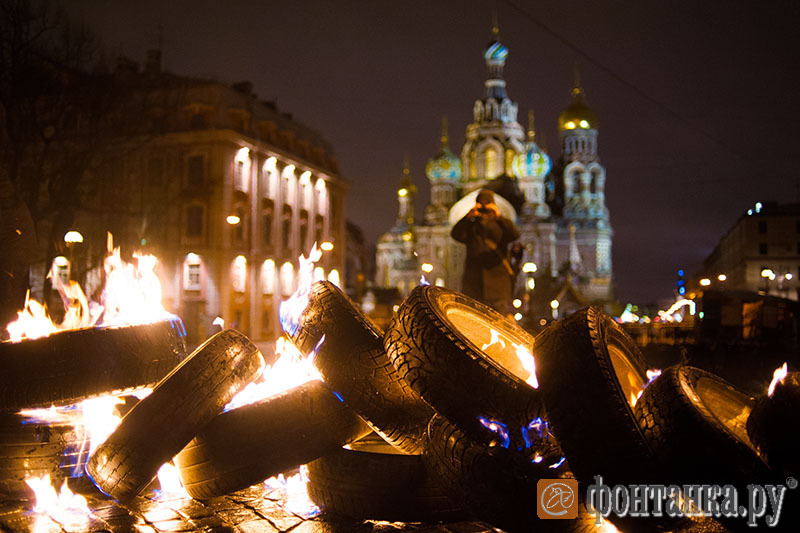 Как объяснили "Фонтанке" организаторы акции "Свобода", "горящие покрышки, флаги Украины, черные флаги и грохот ударов по железу – это песня освобождения и революции. Майдан необратимо распространяется и проникает в сердце Империи. Борьба с имперским шовинизмом продолжается. Мы боремся за нашу и вашу свободу", – говорится в распространенном релизе.