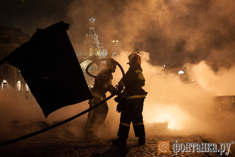 Акция продолжалась 15-20 минут, после чего на место прибыли пожарные, чтобы потушить полыхающие покрышки, а сразу следом за нимим – полицейские. Они задержали четверых акционистов, в том числе и Петра Павленского.
