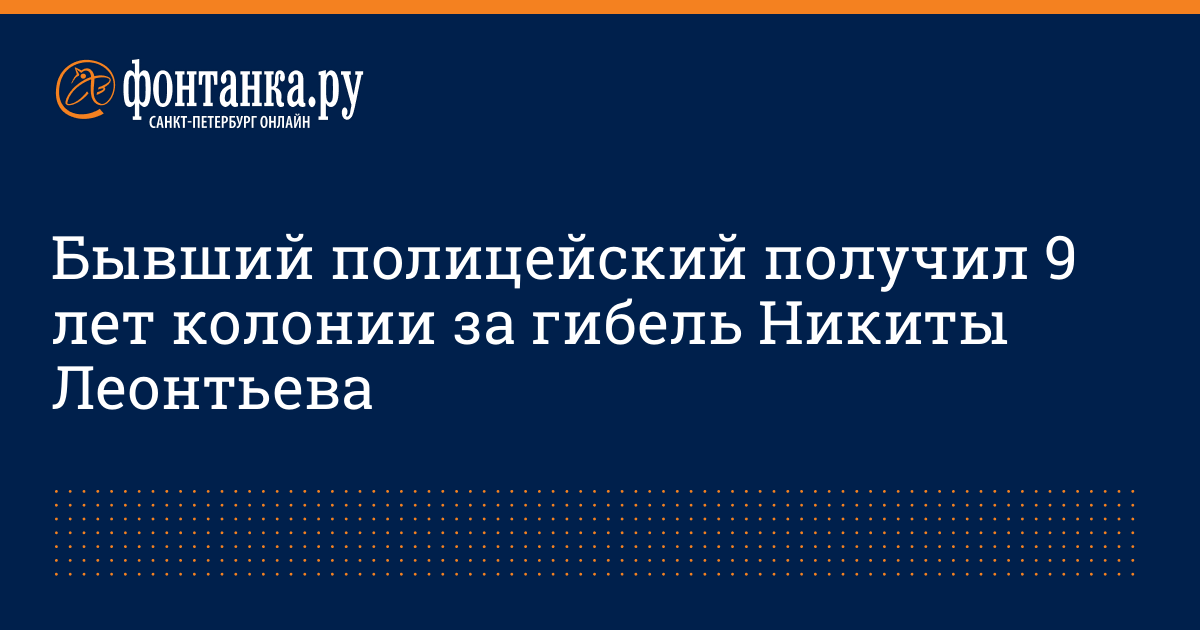 В Петербурге сегодня вынесли приговор последнему обвиняемому в гибели подростка Никиты Леонтьева в январе 2013 года. Бывший замначальника 75-го отдела полиции Невского района Олег Прохоренков получил 9 лет колонии с трехлетним запретом занимать госдолжности. Также суд в полном объеме удовлетворил гражданский иск семьи потерпевшего на 1,5 миллиона рублей.
