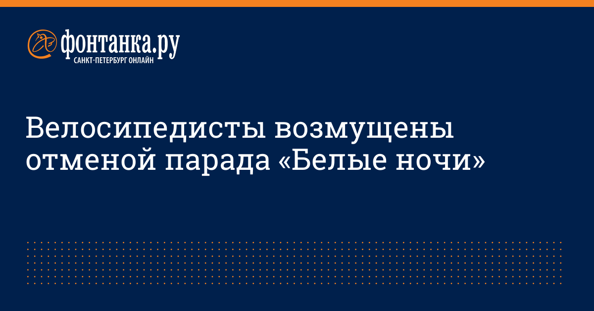 Читатели «Фонтанки» сообщают об отмене традиционного в Петербурге мероприятия – велопарада «Белые ночи», которое должно было состояться в ночь на воскресенье, 19 июня.