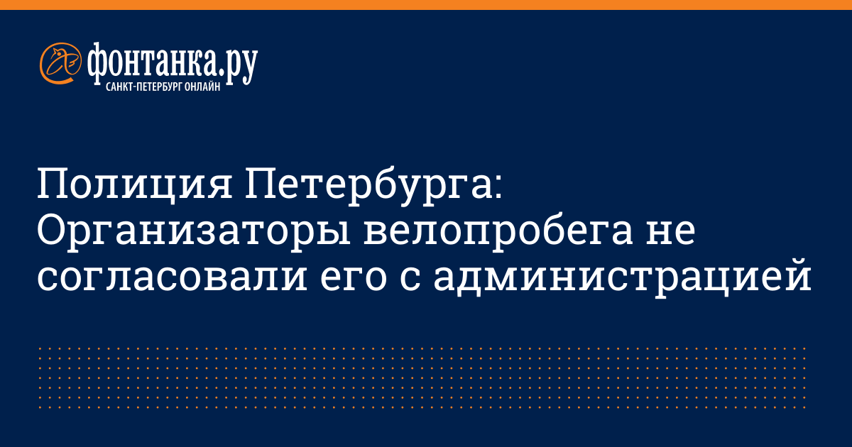 Как сообщили «Фонтанке» в ГУ МВД по Петербургу и области, полиция 18 июня вечером не разрешила провести ежегодный велопробег «Белые ночи» из-за того, что организаторы не согласовали ни его проведение, ни маршрут, с администрацией города или районными администрациями.