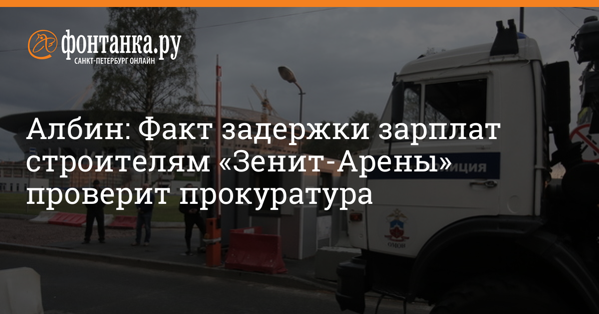 Утром 14 июля прокуратура Петербурга начнет проверку по факту задержки зарплат рабочим строящегося стадиона на Крестовском острове. Об этом сообщил вице-губернатор Игорь Албин.