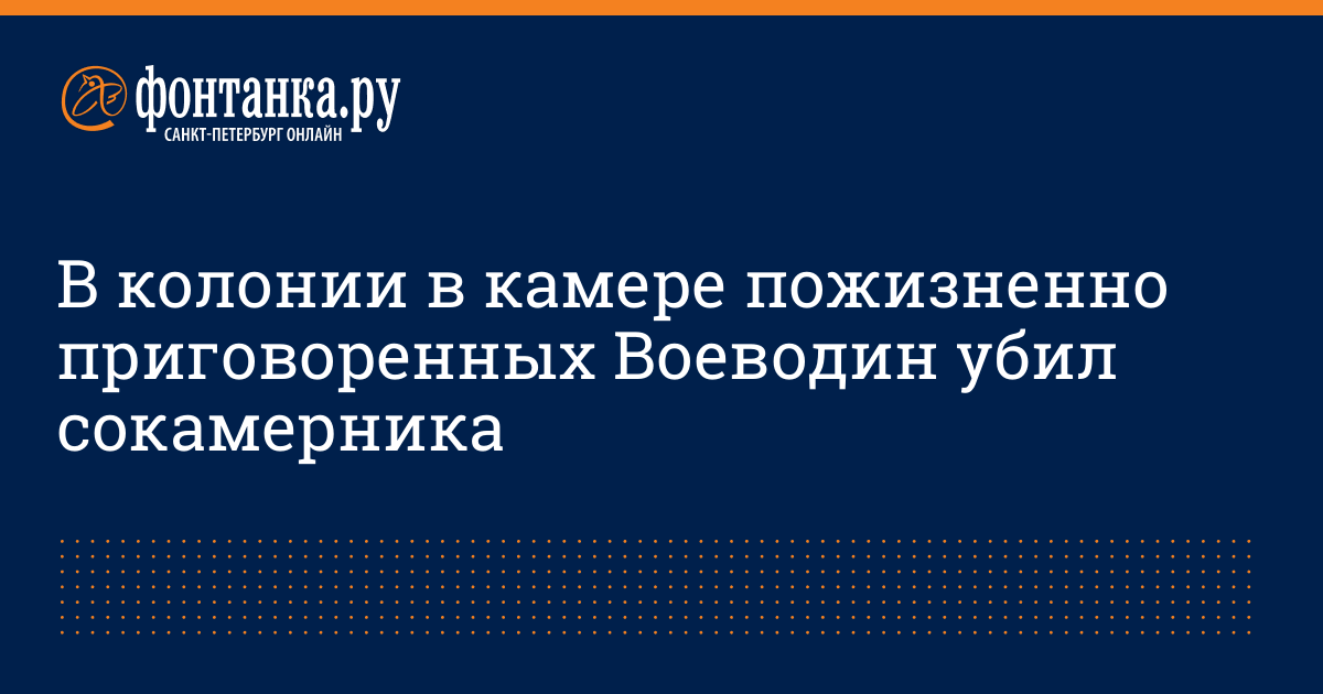 Как подтвердили «Фонтанке» в структурах УФСИН РФ, 13 сентября в камере для пожизненно приговоренных в исправительной колонии 18 в поселке Харп Ямало-Ненецкого автономного округа, она же «Полярная сова», произошла драка. В ходе нее Воеводин забил сокамерника, также пожизненно приговоренного, руками и ногами. Осужденный скончался.