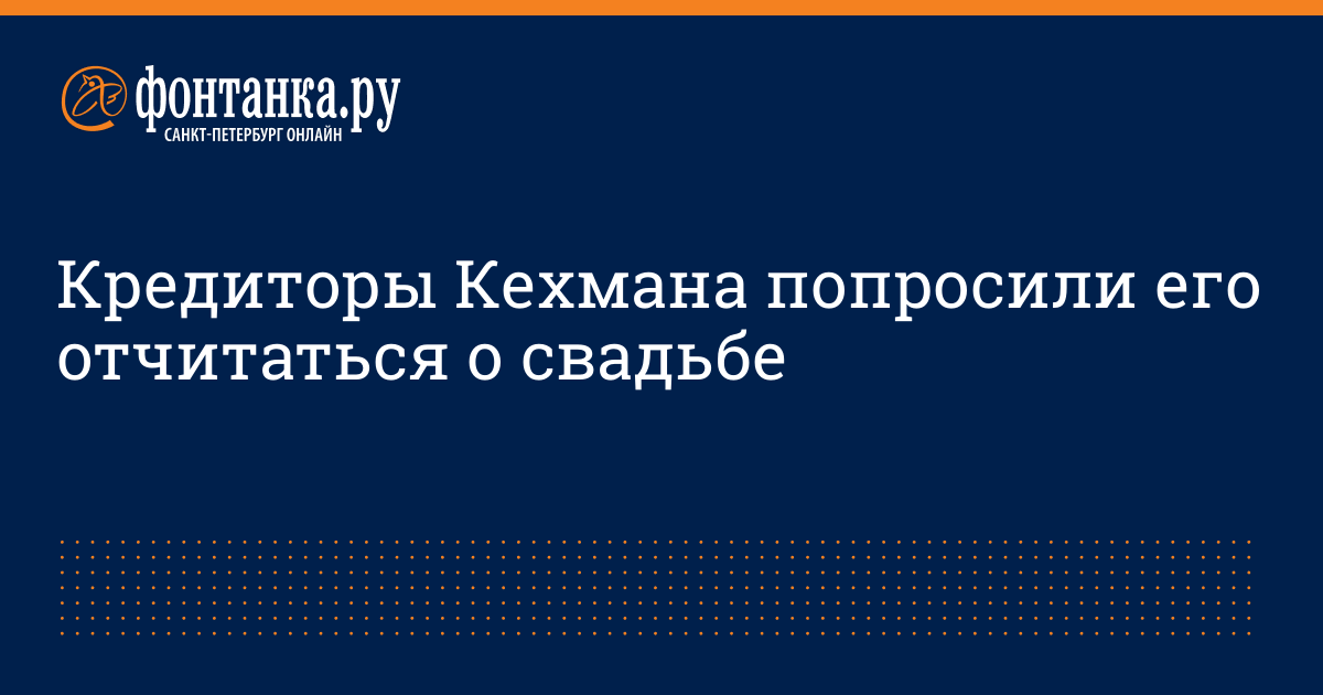 Кредиторы экс-главы JFC Владимира Кехмана попросили его отчитаться о свадьбе. Об этом сообщил финансовый управляющий предпринимателя Михаил Бологов по итогам собрания кредиторов, состоявшегося 31 октября в Москве.