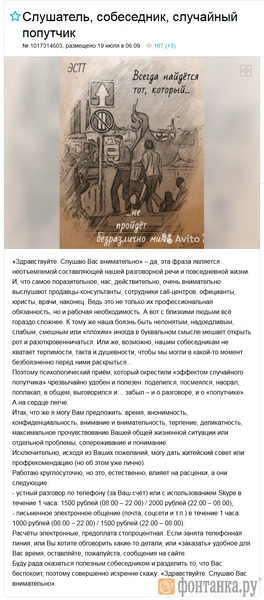 Почти. За исключением некоторых запрещенных на Avito категорий, здесь действительно есть предложения под самые разные запросы – вплоть до собеседников и попутчиков или животных-экстрасенсов.