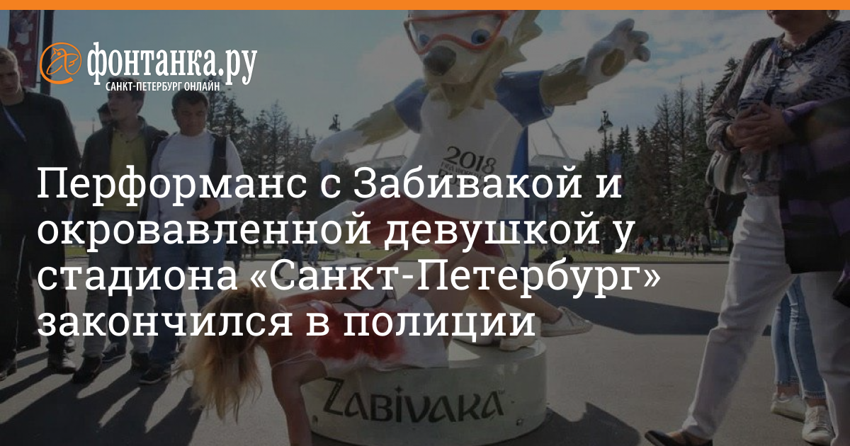 Четверо участников движения «Весна» отправились в отдел полиции после акции на Крестовском острове днём 3 июля. Метафору с окровавленной девушкой у ног волка Забиваки расценили как мелкое хулиганство.