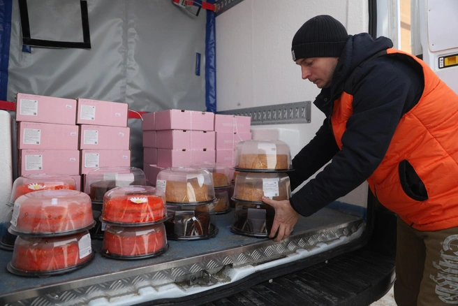 Одним из первых встречать коробки с угощениями вышел штатный диетолог ПНИ № 9 Дмитрий Раганьян. Он помог разгрузить машину, а заодно убедился, что его подопечным не привезли никакой «вреднятины». Дело в том, что у большинства ребят строгая диета. Поэтому от идеи угостить проживающих суши и роллами пришлось отказаться — у кого-то аллергия на рыбу, кому-то нельзя соусы или другие ингредиенты. А тортики и пироги любят все, и им оказалось проще пройти строгий контроль диетолога. В составе — только натуральные продукты, без синтетических красителей и усилителей вкуса. Безусловным фаворитом стал морковный торт — оранжевый и необычный.