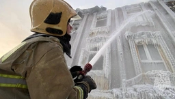 В Уфе горящий дом стал «ледяным замком» после работы пожарных в -37 градусов