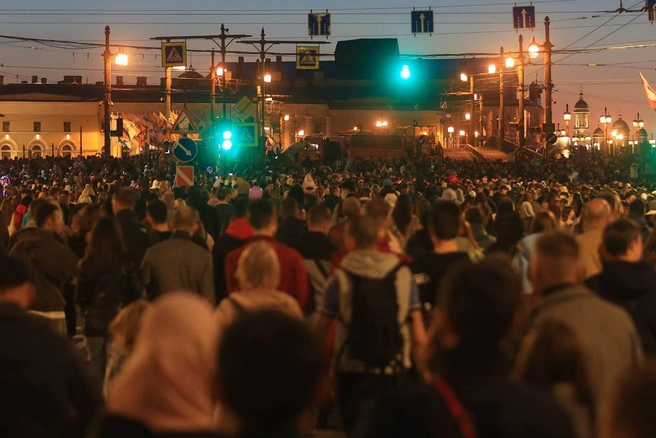 Десятки тысяч горожан и туристов ожидают начала Петровского фестиваля огня, который стартует ровно в полночь. Событие станет финальной точкой празднования дня рождения Петербурга, который отмечает 320-летний юбилей.