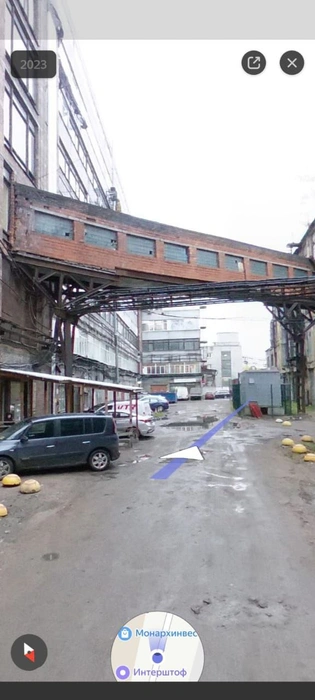 Как рассказал читатель «Фонтанки», переход между зданиями около корпуса 260 выглядел старым и провисшим. Под ним находится вход в бизнес-центр.