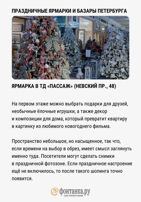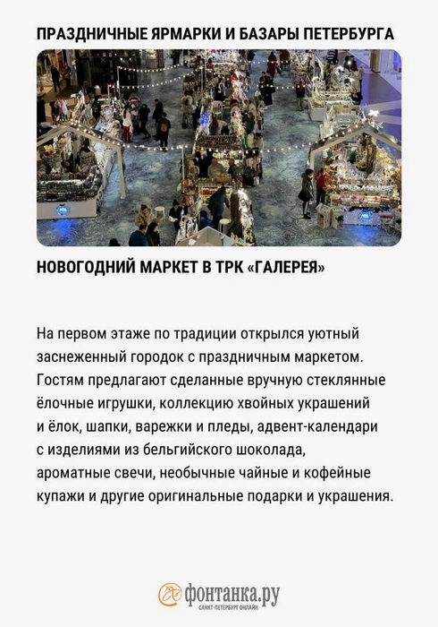 В Петербурге на новогодних каникулах работают красочные ярмарки. Там можно хорошо провести время, пропитаться атмосферой зимней сказки, да и просто купить что-нибудь симпатичное. «Фонтанка» рассказывает, куда есть смысл заглянуть.