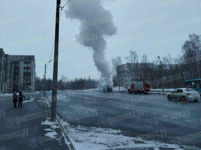 Лазурный автобус вспыхнул в Петергофе на Ульяновской улице, напротив физфака СПбГУ, утром 28 февраля. Об этом сообщил «Фонтанке» читатель Дмитрий, а также пишут очевидцы в телеграм-канале «Мегаполис».