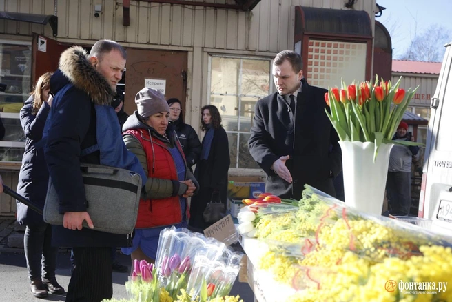 Впрочем, оставшийся на месте оператор «Фонтанки» заметил, что уже через несколько минут после того, как разочарованные чиновники и репортеры уехали на следующий адрес, к месту подъехал черный автомобиль, из которого бородатый мужчина в кепке выгрузил прилавок, мимозы и тюльпаны. Торговля снова пошла.