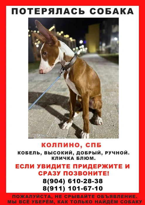 Хозяева просят сообщать любую информацию о местонахождении Блюма по номерам: 8 (904) 610-28-38, 8 (911) 101-67-10.