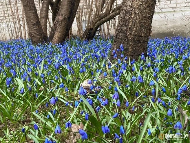 Во дворах в Пушкине распустились пролески. Эти многолетние луковичные растения цветут обычно в ярких синих оттенках. Читательница «Фонтанки» запечатлела на Школьной улице целый сине-зеленый ковер из этих цветов. По ее словам, так сейчас выглядят все пушкинские дворы.