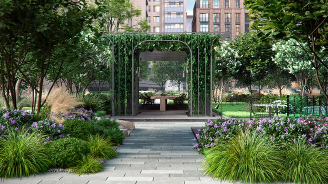 Внутренняя территория будет оформлена в концепции «лесных комнат», как череда самостоятельных ландшафтных зон, плавно перетекающих одна в другую. В одном из корпусов расположится комьюнити-клуб для жителей с комнатами для переговоров, библиотекой, кинозалом, фитнес-залом, бьюти-кабинетом и детским клубом.