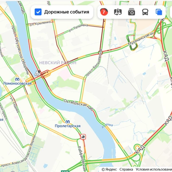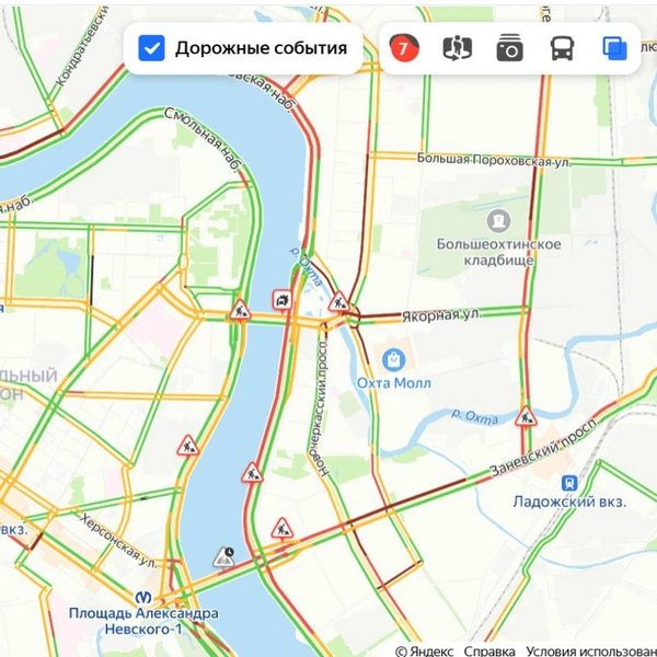 Пробки есть повсеместно: на набережных Невы, на подъездах к Литейному мосту, в центр и на основных магистралях, даже на ЗСД в районе Екатерингофки.