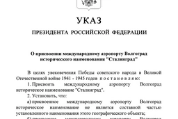 Путин своим указом переименовал аэропорт Волгоград в «Сталинград»