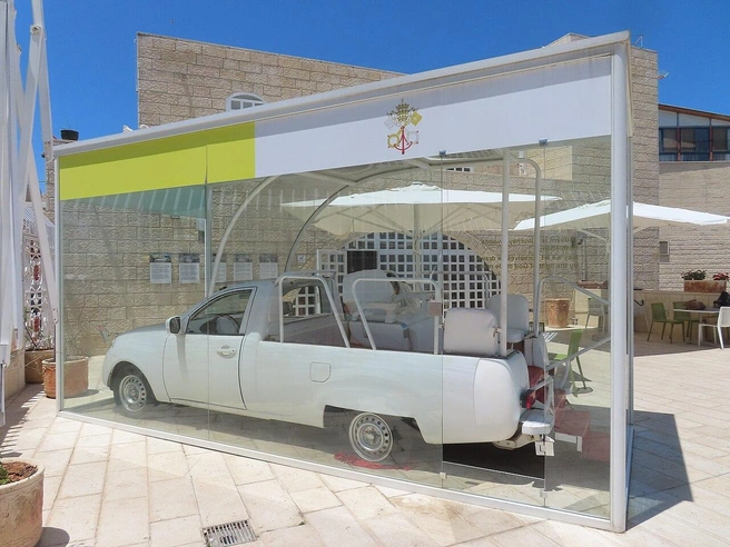 Автомобиль марки Mitsubishi белого цвета был переделан в папамобиль в 2014 году для визита Франциска в Вифлеем на Западном берегу реки Иордан. Президент Палестины тогда подарил папе технику, а понтифик незадолго до смерти одобрил ее использование в Газе.