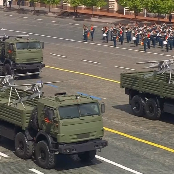 колонна 7-го отдельного полка войск беспилотных систем с БПЛА «Орлан-10», «Орлан-30», «ЗАЛА», «Ланцет-51», «Ланцет-52», «Карпия» и «Герань».