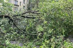 Дерево упало на машины на Краснопутиловской улице в Петербурге
