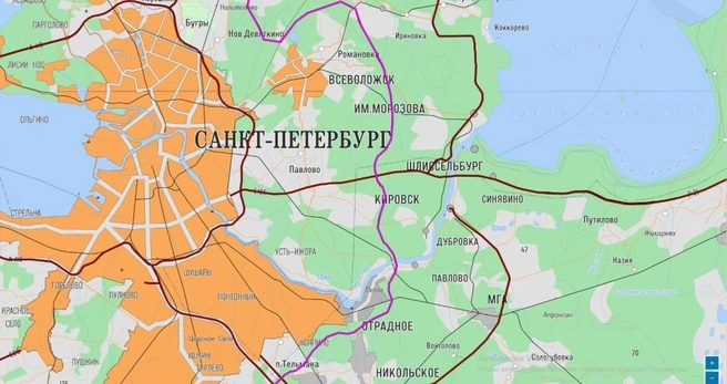 В проекте схемы территориального планирования, которая выложена на сайте Минэкономразвития, набросали трассировку для второй Кольцевой вокруг Петербурга. Есть новости.