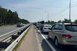 Трасса «Кола» стоит в пробках из-за дорожных работ