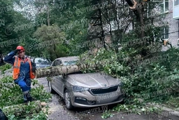 Ветер повалил дерево на машину во Фрунзенском районе Петербурга