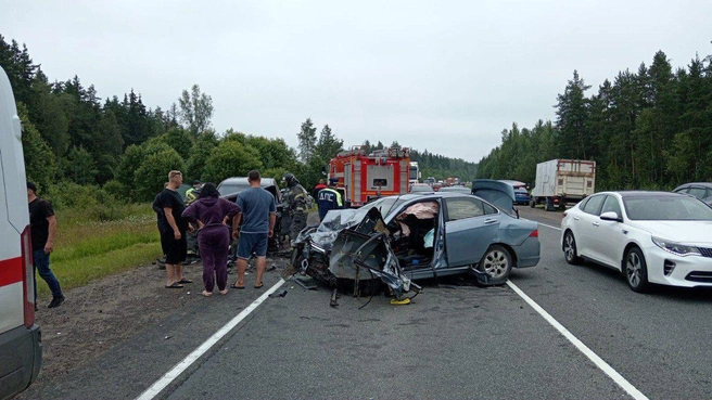 Около 14 часов дня 10 июля на 114-м километре федеральной автодороги Петербург — Псков, возле Мшинской в направлении Пскова, столкнулись три автомобиля, рассказали «Фонтанке» в пресс-службе ФКУ Упрдор «Северо-Запад». Как уточняет 47news, участниками стали Honda Accord, Toyota Land Cruiser Prado и Skoda Rapid.