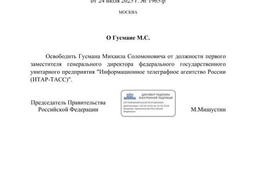 Михаил Гусман освобожден от должности первого заместителя гендиректора ТАСС