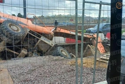 Экскаватор упал в траншею напротив СПбГУ в Петербурге