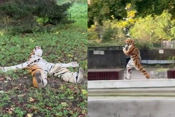 В зоопарке показали на человеке, как ловят сбежавшего тигра