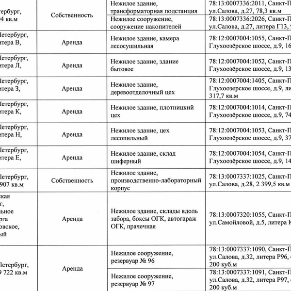 В частности, на улице Салова под изъятие попали ремонтно-механическая мастерская (дом № 47, лит. А), административно-бытовое здание (№ 53, корпус 1, лит Р), производственно-лабораторный корпус (№ 28).