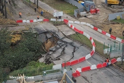 В Петербурге продолжаются работы на месте провала на улице Харченко