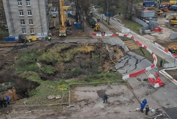 В Петербурге на месте провала на улице Харченко работает спецтехника
