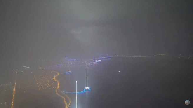 Петербург утром накрывает пелена облаков. Верхушка Лахта Центра прячется в облаке.