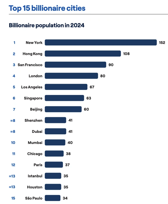 Примечательно, что Москва на этот раз совсем не попала в топ-15 городов по числу долларовых миллиардеров, хотя годом ранее входила в топ-5.