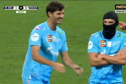 "После этого игрок надел чёрную балаклаву и надел её, отпраздновав гол."