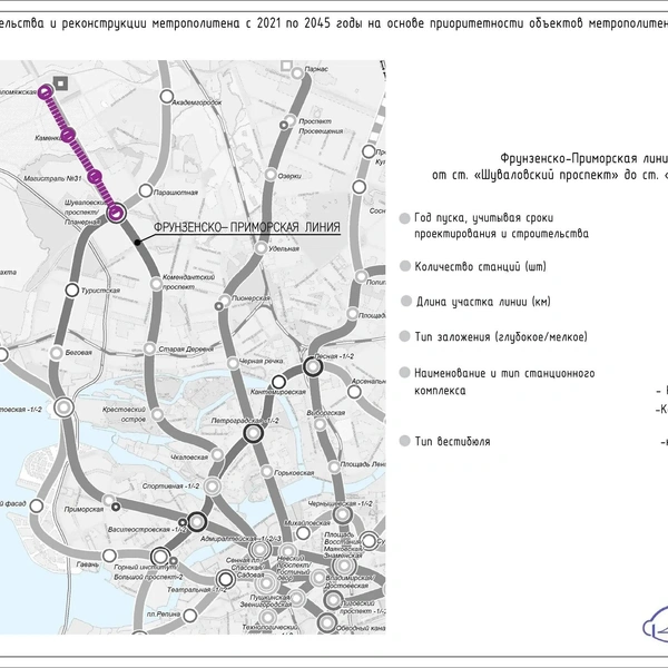 Напомним, пока фиолетовая линия построена только до станции «Комендантский проспект». То есть, чтобы говорить о названном участке метро, надо построить предыдущий — от «Комендантского проспекта» до «Шуваловского проспекта», который станет пересадочной станцией с зеленой линией.