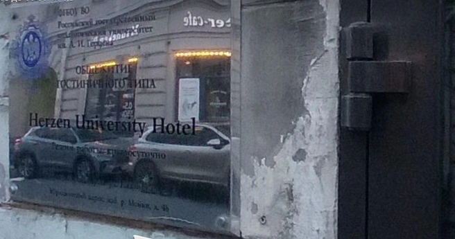 Разгадка проста — это общежитие Герцена. Вот откуда китайские юноши и девушки — это будущие педагоги. Заглянули внутрь. Там прям очень не по-герценовски, широко, светло и богато. Ну и хорошо. Нам не довелось в студенческие годы так богато пожить, так хоть китайская молодежь пусть. Да еще и с бесплатным интернетом. Все для людей!