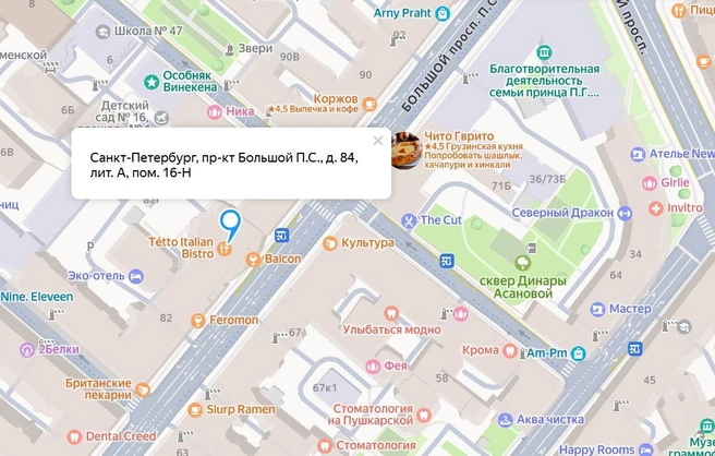 8. Итальянская улица угол с Грибоедова. Очень туристическое место. Точка стоит в немного странном месте, но мы отправились ее искать.