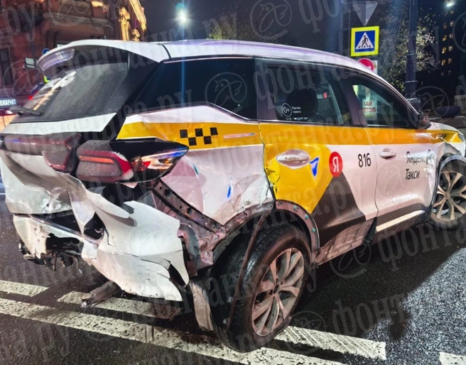 Массовое ДТП с участием автомобиля такси произошло в Адмиралтейском районе Петербурга вечером 5 ноября. К месту происшествия прибыли медики и спасатели, стало известно «Фонтанке».