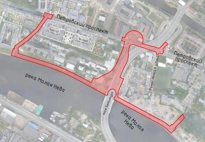 Территория, о которой идет речь, интересная. По генплану окружающая мост Бетанкура часть Петровского острова — это зона Ж4 (многоэтажная жилая застройка в 9 этажей и выше), на карте отмечена красным. Кто видит, как изменился вид на Петровский остров с воды, не удивится: там плотно вырастают новые жилые комплексы.