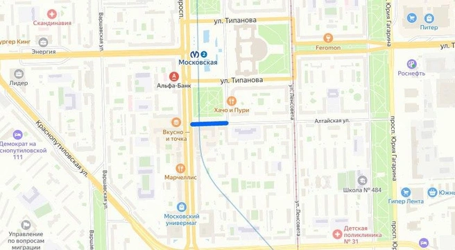 В Московском районе с 10 ноября до 24 декабря будет закрыто движение по Алтайской улице (у станции метро «Московская»), от Московского проспекта до Демонстрационного проезда. Перекрытие связано с реконструкцией инженерных сетей.