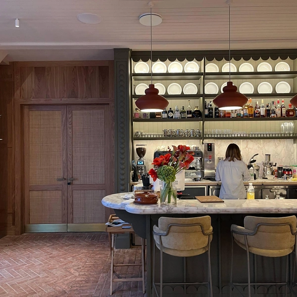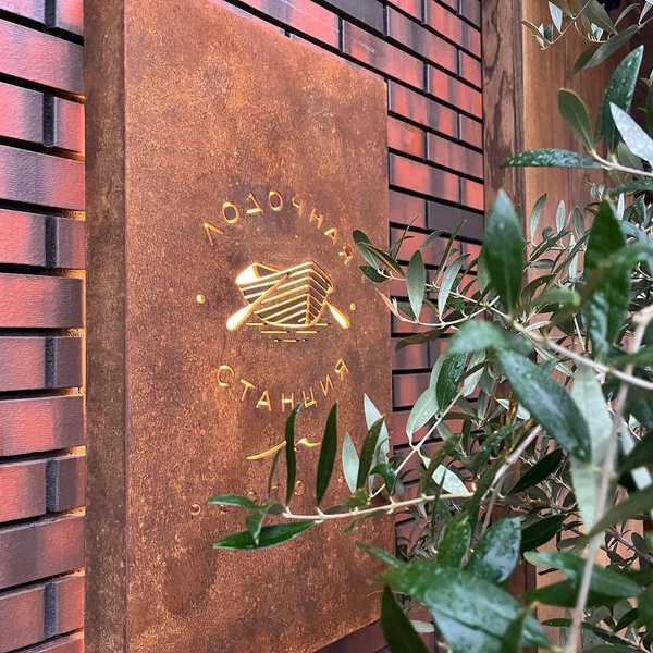 Заведение открылось на Петровском острове, который за последние лет 10 превратился из места уединенного и по-своему идиллического в хаотическое нагромождение строений, которые принято называть жилыми комплексами бизнес-класса. Когда-то именно в этом месте располагался пивоваренный завод «Красная Бавария», мимо которого мне регулярно приходилось совершать интенсивные утренние пробежки. Тогда казалось, что и местная земля, и сами краснокирпичные строения навечно пропитаны пьянящим сладковатым запахом. Но ныне о прошлом ничего не напоминает. Зато пространство между разноцветными кубиками новостроек наглухо перегородили заборы. И если бы не навигатор, утверждающий, что нужно двигаться именно сюда, я бы никогда не подумал, что ресторан может оказаться на закрытой территории. Но это именно так! Конечно, девушка у калитки не смогла ничего противопоставить голодному напору, и я отправился к длинному одноэтажному строению на берегу Малой Невки. Настоящий секретный ресторан: вывесок нет никаких, единственная маленькая табличка у двери загорожена кроной оливкового дерева.
