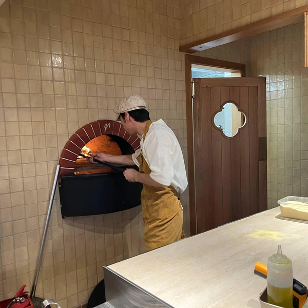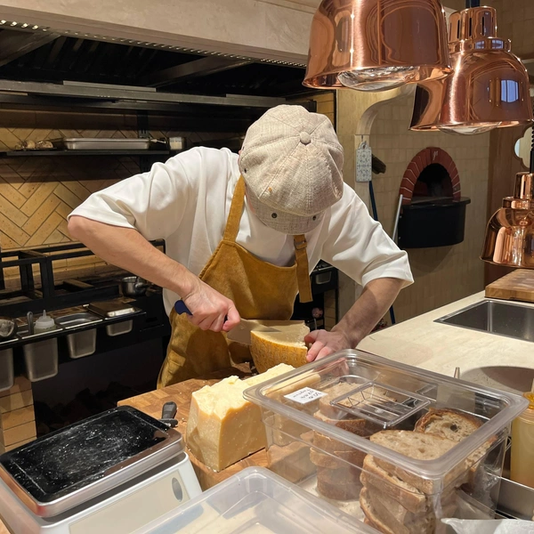 Но внутри хорошо: на полу елочкой выложена брусчатка как на какой-то старой европейской улочке, столы и столики с белыми скатертями окружены плетеными креслами, на кухне горит огонь в печке для пиццы, а повар в кепке сосредоточенно кромсает сырную голову. «Что за сыр?» — спрашиваю я. «Пармезан», — следует ответ, и в доказательство своих слов мне протягивают осколок янтарного цвета.