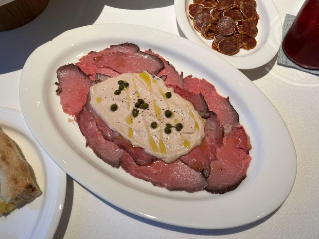 Виттело тоннато (1100) порадовал размерами, да и мясо было сочное, только я бы добавил тунцового соуса плюс несколько каперсов.