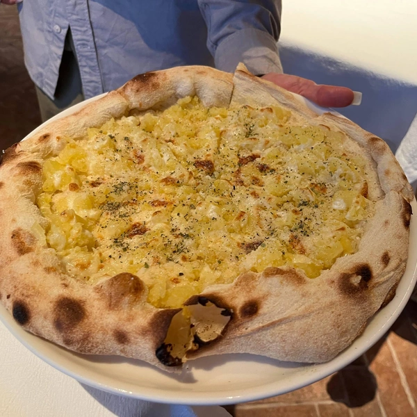 Пиццу с картофелем и пармезаном (950) я лично встречаю в Петербурге впервые. В данной интерпретации — это скорее дополнение или даже гарнир к другим блюдам. Потому что чувствуется, прежде всего, картошка, а вот пармезан, сколько я ни принюхивался, к сожалению, нет.