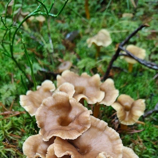Трубчатых лисичек (они же ворончатые лисички — лат. Cantharellus tubaeformis) особенно много в старых зеленомошных еловых лесах в Выборгском и Приозерском районах Ленинградской области. У них характерная «внешность» — желтоватая длинная и полая ножка, а шляпка цвета опавшей листвы. Их можно варить, тушить, сушить, мариновать, замораживать в сыром виде, использовать для соусов, приготовления супов, как начинку для пирогов. Главное правило: жарить не более 15–20 минут, иначе лисички станут «резиновыми». Перед жаркой никак обрабатывать не надо: ни отваривать, ни вымачивать, даже резать не нужно — их хорошо жарить целиком. «Трубчатые лисички очень ароматные и нежные на вкус грибы», — отмечает Павел Глазков.